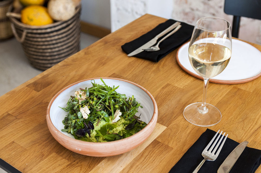 Şef Pınar Taşdemir, yeni restoranı Araka‘ya verdiği isme menüsünde atıfta bulunuyor; mevsiminde servis ettiği yabani semizotu salatasını iri bezelye püresiyle tabakta eşleştiriyor. Asiditesiyle ferahlatan, yemyeşil ve keyifli bir başlangıç elde ediyor.