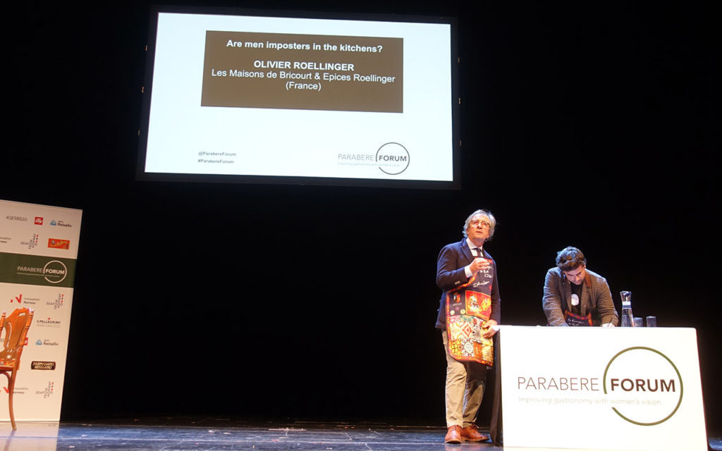 Şef, gıda aktivisti ve girişimci Olivier Roellinger ise Parabere Forum’un beşinci toplantısında konuşan ilk erkek olarak zor bir pozisyonda olduğunu kabul ediyor; fakat hem kadının hem de erkeğin mutfaktaki yerini sorguluyor. 1968 yılında kadınların kurtuluş hareketinin ardından ev mutfaklarının sanayi gıda ürünlerine terk edildiğini savunan Roellinger, bu terk edişin sonuçlarının tüm ekosistem için bir facia niteliği taşıdığını vurguluyor. “Küresel olarak içinde bulunduğumuz koşullarda, inanıyorum ki kadınlar entelektüel kapasiteleri, yetenekleri ve olgunluklarıyla harekete geçerek karşılaştığımız büyük sorunlarla baş edecek güçteler. Ancak onlar, bu oditoryumda aramızda bulunan Alice Waters’ın başlattığı gıda devrimine liderlik edebilir, ihtiyacımız olan etik değerlere sahip, keyifli, yeni bir küresel tarif kitabını birlikte yazabilirler.”