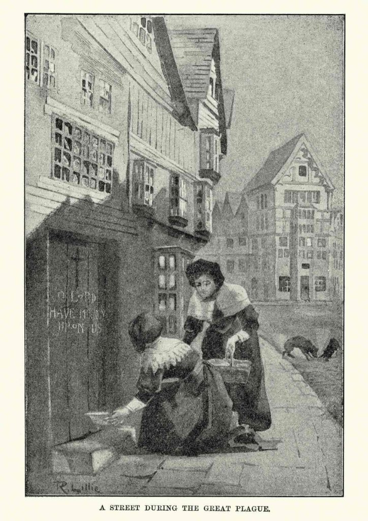 Londra’da Büyük Veba sırasında sokağı depikte eden bir gravür. Kaynak: istock.