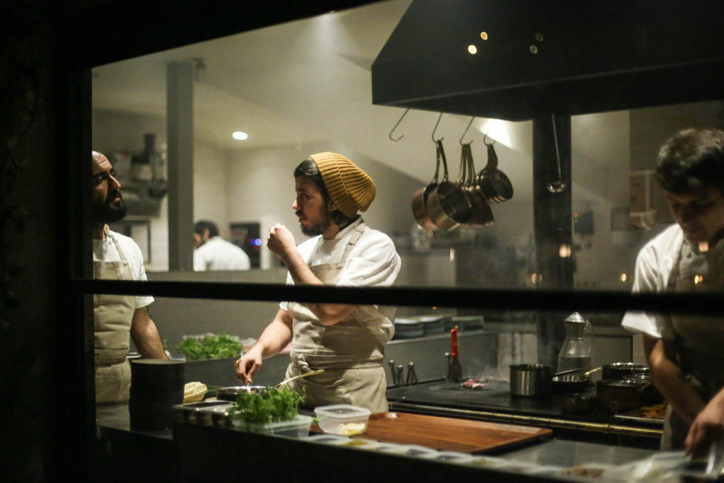 Menüye koyduğumuz tabakların hepsi benim sevdiğim yemekler. Kendi yediğim yemeği yapıyorum burada. Ve bu yemekler ilk etapta bir fikirden başlıyor; yemeğe dair korumak istediğim en önemli şey ise aklımdaki, damağımdaki tat. Örneğin menüdeki sulu çiğ köfteyi önce üzerinde otlarla da denedim; ‘bir ot salatasıyla servis edeyim, ve karıştırıldığında biraz kısıra dönsün’ dedim; fakat bu sefer de otların dokusu çiğ köftenin lezzetini fazla yumuşattı. Sonra da ‘bu tarifin ana malzemesi et; ve bu tabak biraz da sashimiye yakın’ deyip üzerine tataki koydum. Birçok tarifte bu şekilde deneye deneye yol alıyoruz. Örneğin bir mantı yiyoruz; ‘bunun yoğurduna biraz brown butter ekleyelim; birazcık dashi yapalım, bir umami ekleyelim; yoğurdu da çok lezzetli yapalım, tattığın zaman yoğurt damağın temizleyicisi değil de, lezzetin yükselticisi olsun’ gibi fikirlerle ilerliyoruz.